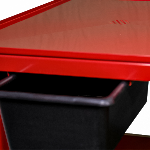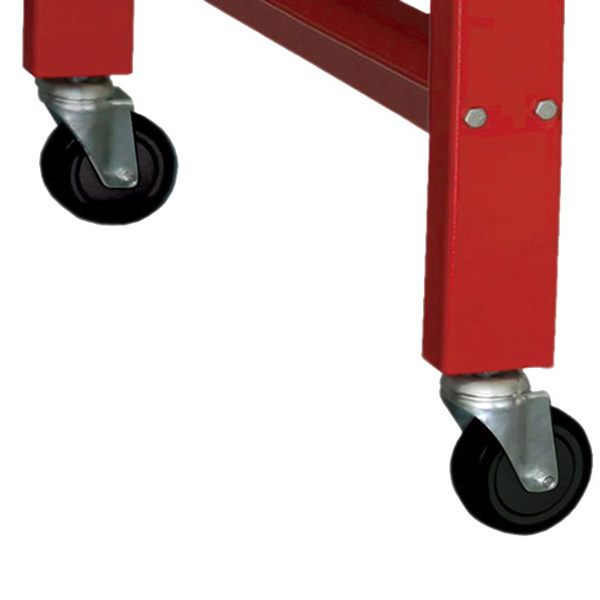 • Incluye 4 ruedas (2 rígidas y 2 giratorias de bloqueo) y cajón de almacenamiento de herramientas.